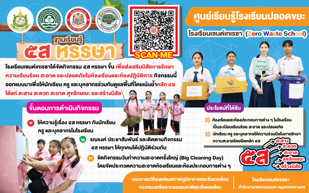 ส่งเสริมนิสัยการรักษาความเรียบร้อย สะอาด และปลอดภัยในห้องเรียนและห้องปฏิบัติการ โดยเน้นย้ำหลัก ๕ส ได้แก่ สะสาง สะดวก สะอาด สุขลักษณะ และสร้างนิสัย